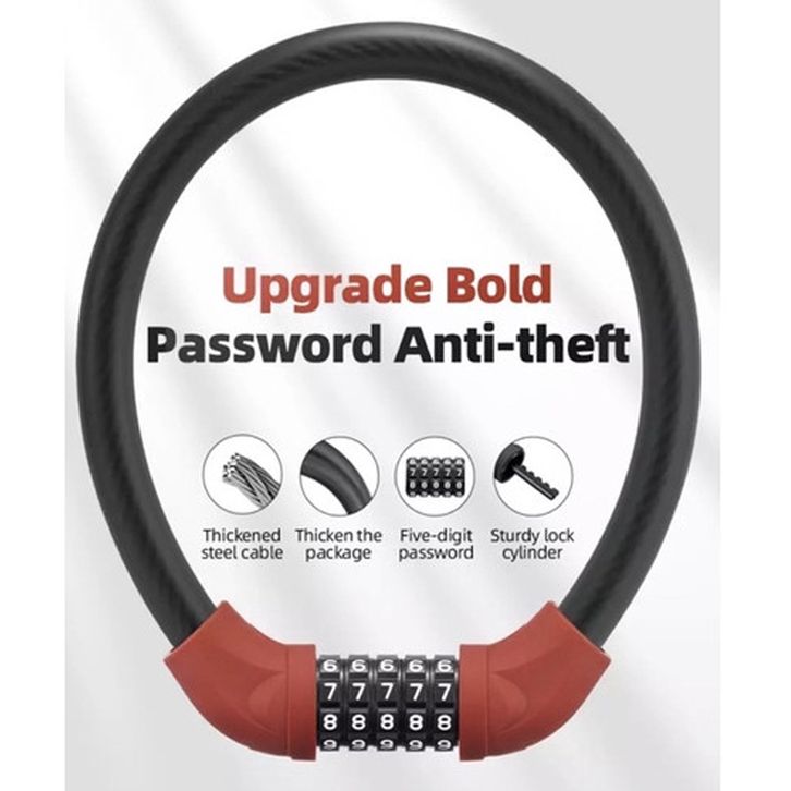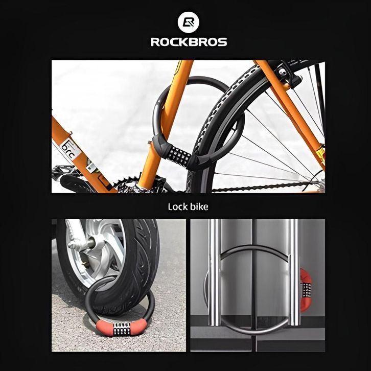 KUNCI GEMBOK SEPEDA BAJA 87CM BICYCLE BIKE LOCK STEEL 5 DIGIT CODE MTB SELI ROAD ROCKBROS RKS870