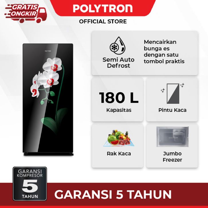 Kulkas POLYTRON Beauty metal door 1 pintu 180 liter PRB 189B