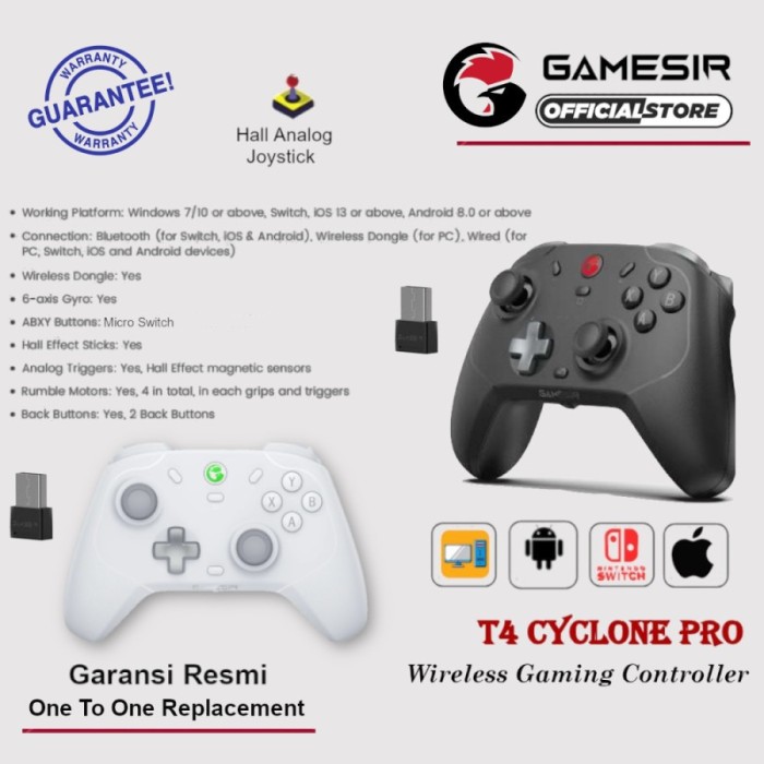 READY TERLARIS TERMURAH GAMESIR T4 CYCLONE PRO WIRELESS GAMING CONTROLLER HALL EFFECT STICK - BLACK, GARANSI 3 BULAN