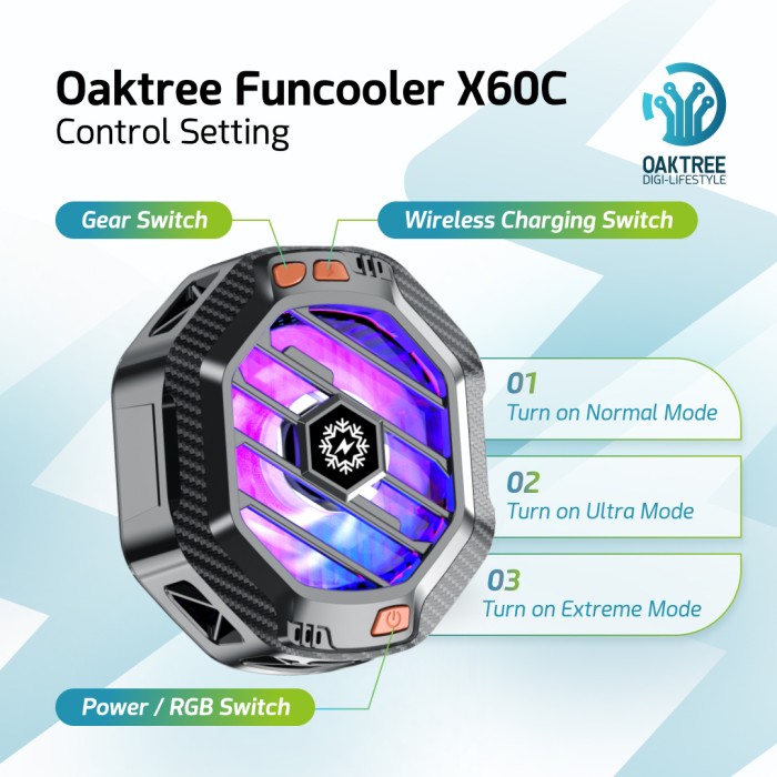 READY TERLARIS TERMURAH OAKTREE FUNCOOLER X60C PENDINGIN HP MAGNET FAN COOLER WIRELESS CHARGE