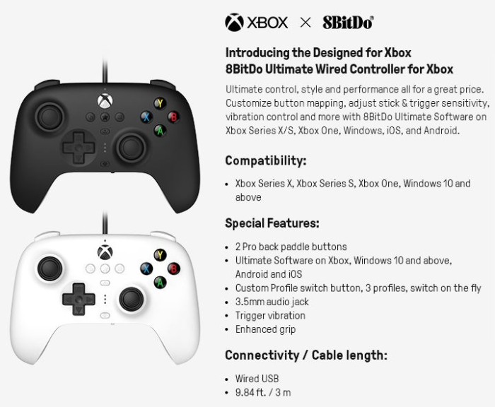 READY TERLARIS TERMURAH 8BITDO ULTIMATE WIRED CONTROLLER XBOX GAMEPAD WINDOWS PC XBOX SERIES - PUTIH, GARANSI 1 BULAN