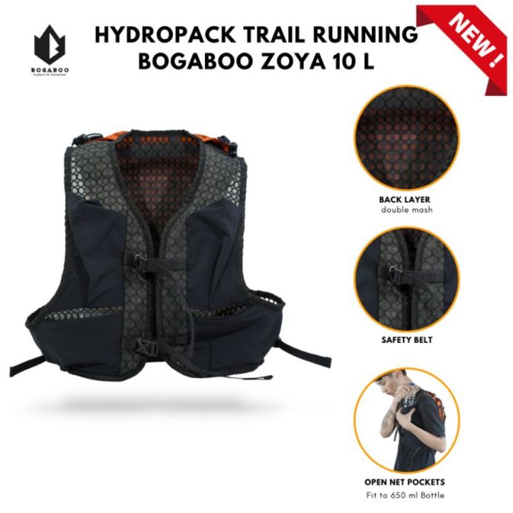 Tas Sepeda BOGABOO Zoya 10L Hydropac Vest Trail Running Lari Sepeda Motorcross Pria Wanita
