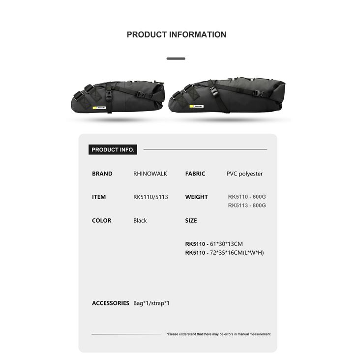 Tas Sepeda Rhinowalk Saddle Bag 13L WaterProof Bicycle Bag RK5113