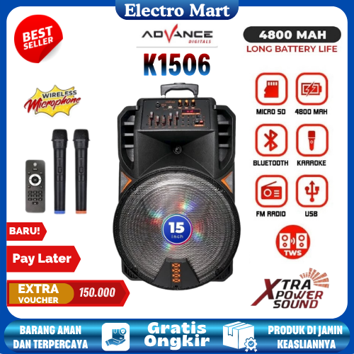 [Mall]Advance Speaker Bluetooth Portable K1506 Speaker Meeting karaoke Bluetooth 15 Inch Free 2 Bh Mic Garansi Resmi