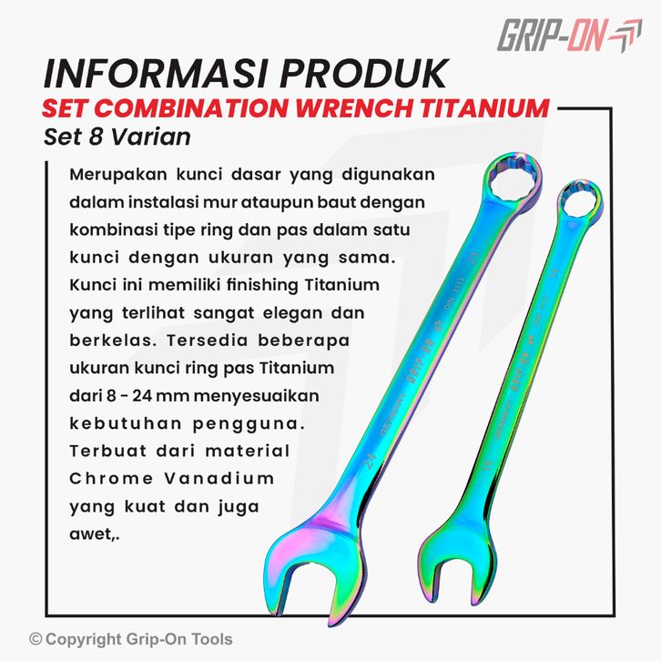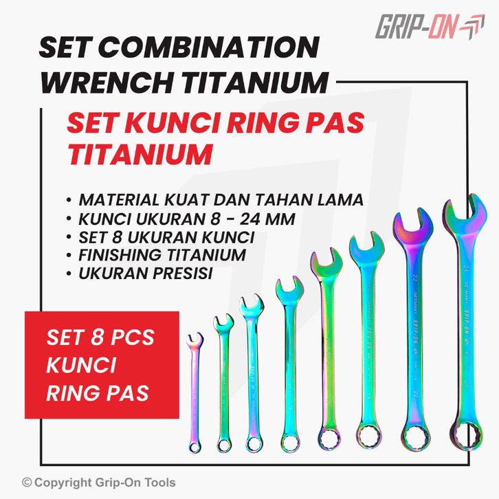 Grip-On Combination Wrench Titanium Set 8 Pcs Kunci Ring Pas Titanium Set 8 Pcs 8-24 MM