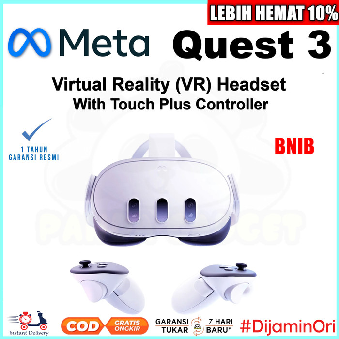 READY TERLARIS TERMURAH META OCULUS QUEST 3 VIRTUAL REALITY HEADSET 128GB 512GB VR + CONTROLLER BNIB - QUEST 2,