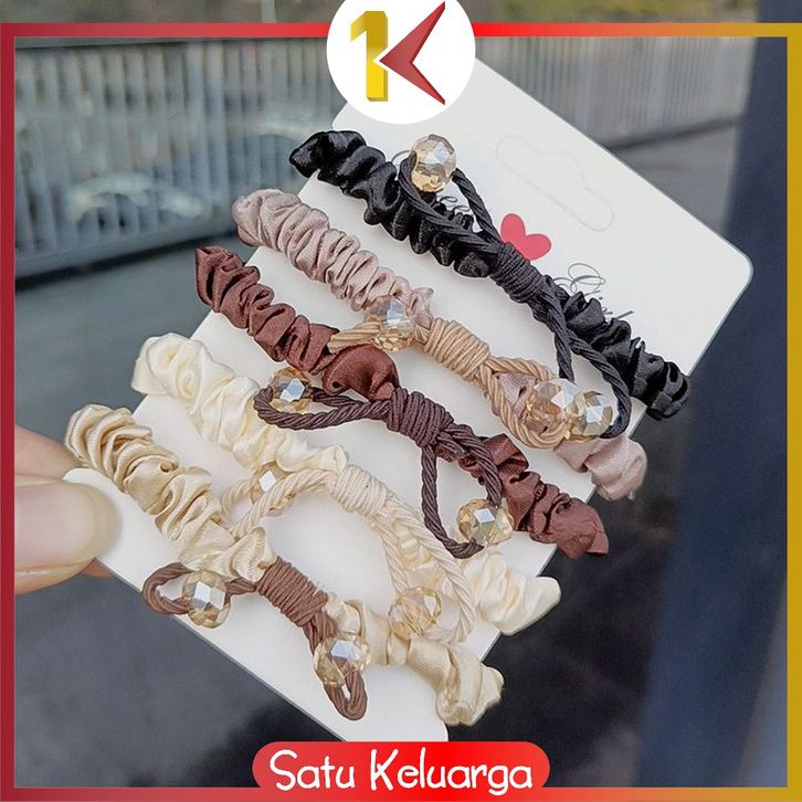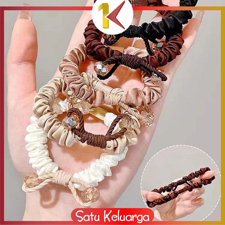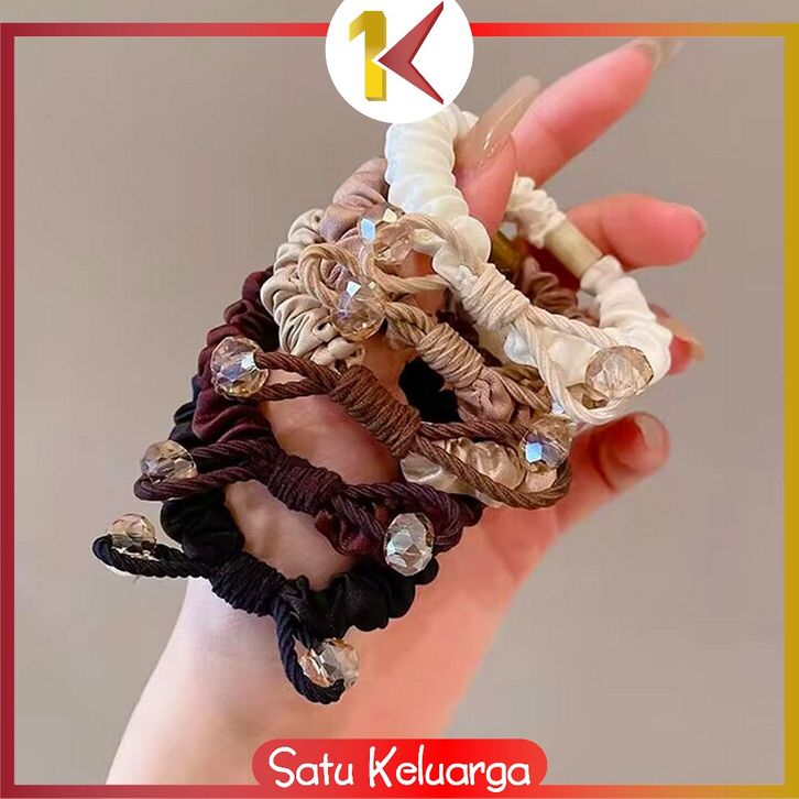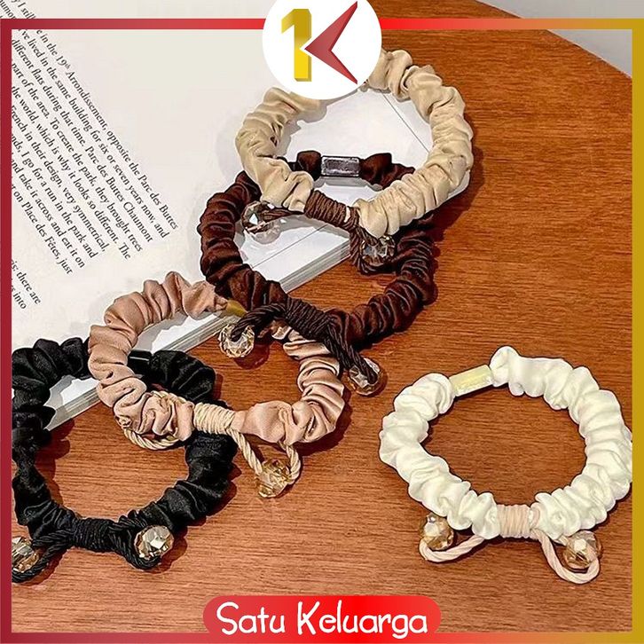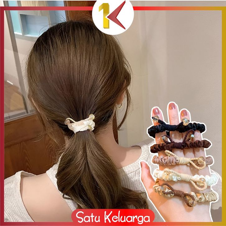 SK-C1132 Ikat Rambut Scrunchie Kecil Ponytail Aksen Permata / Karet Rambut Aksesoris Rambut Wanita Simple Korean Style