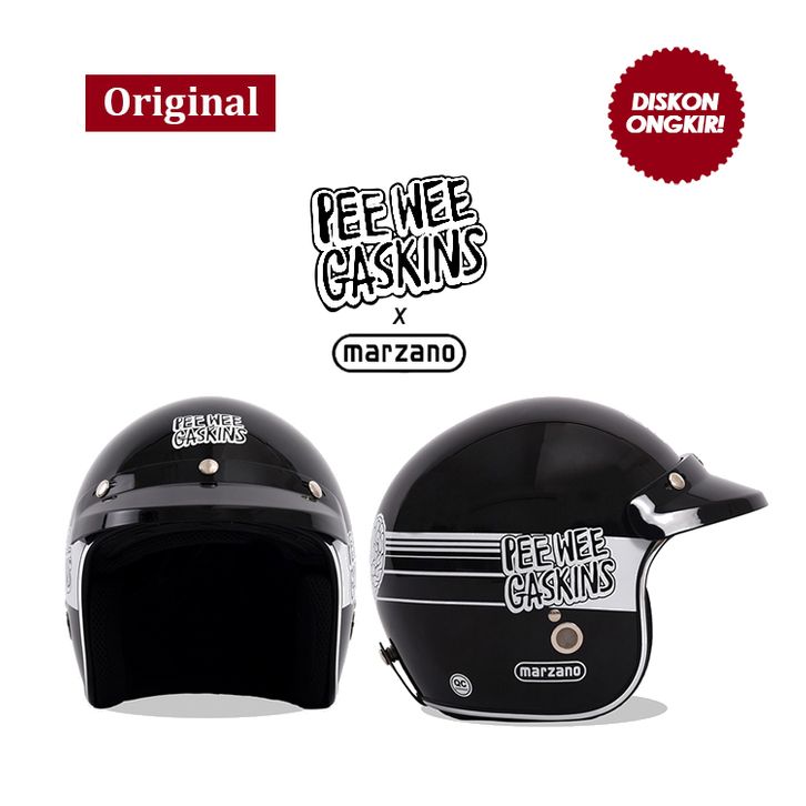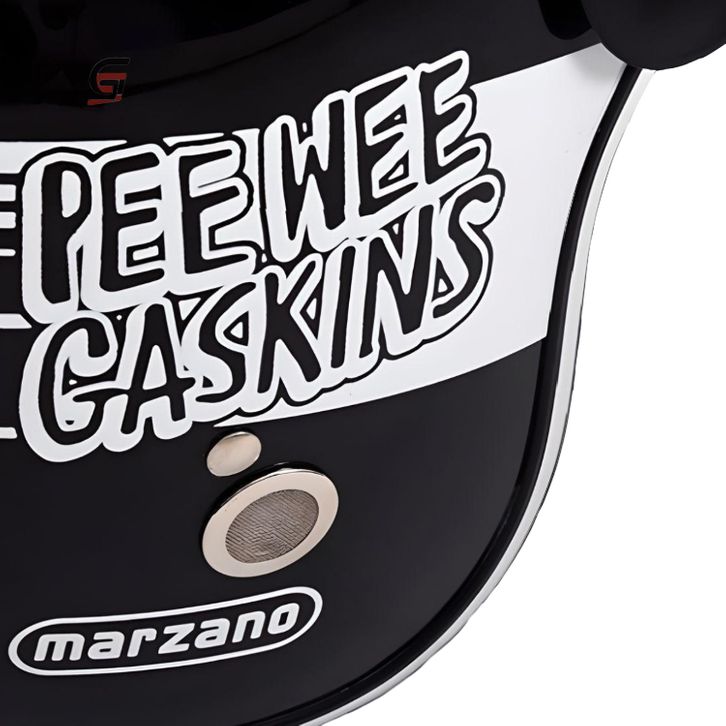Helm Retro Pee Wee Gaskins x Marzano Bogo Classic Black and White Helmet Warna Hitam Putih Ukuran M L XL XXL SNI