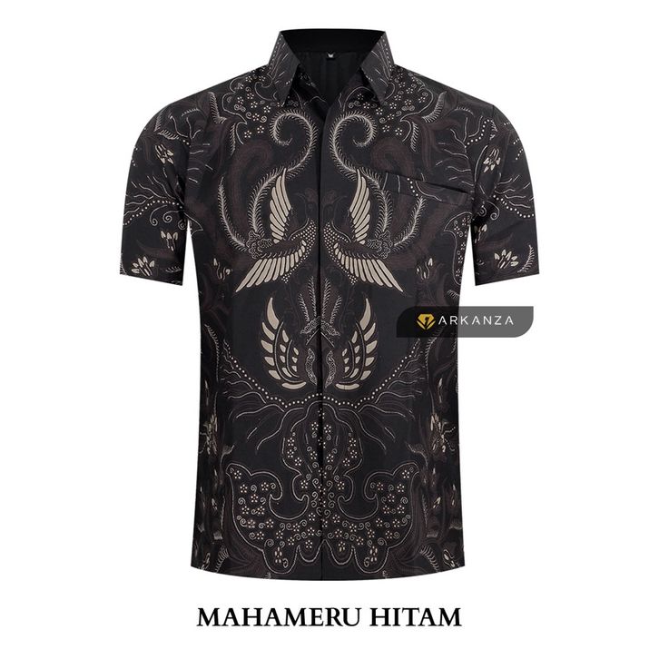 BATIK Motif MAHAMERU HITAM Hem Atasan Kemeja Baju Batik Pria Cowok Laki Laki Slimfit Full Lapis Furing Lengan Panjang