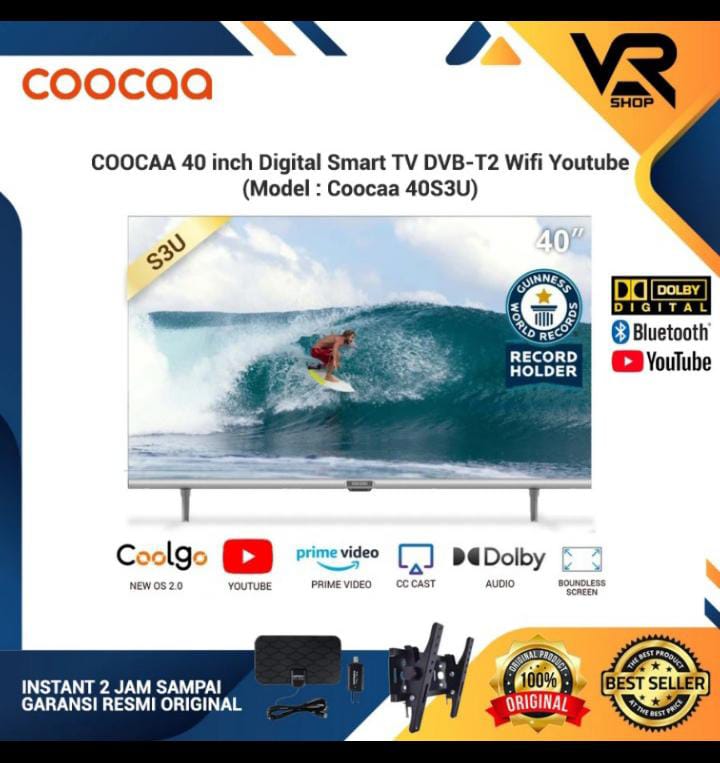 VR Bisa Instant COOCAA 40 inch Digital Smart TV DVB-T2 Wifi Youtube 40S3U bluetooth