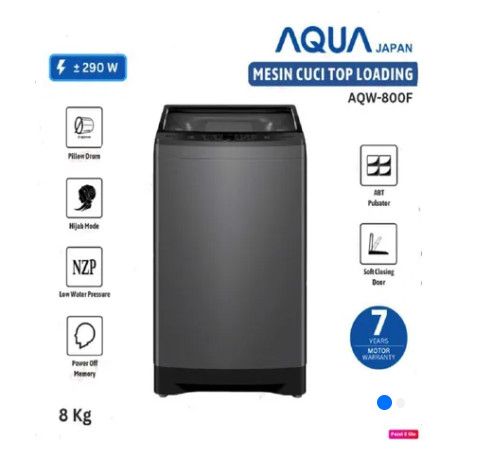MESIN CUCI 1 TABUNG TOP LOADING AQUA 8 KG 290 WATT - AQW 800 F