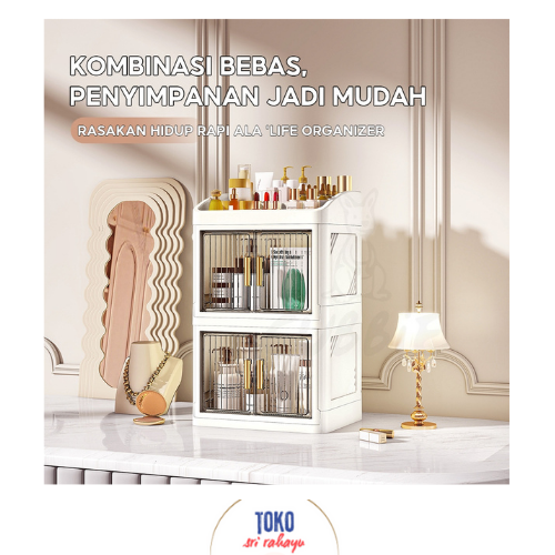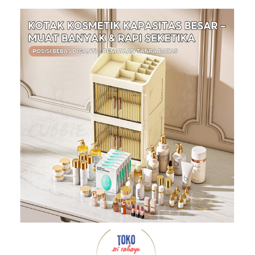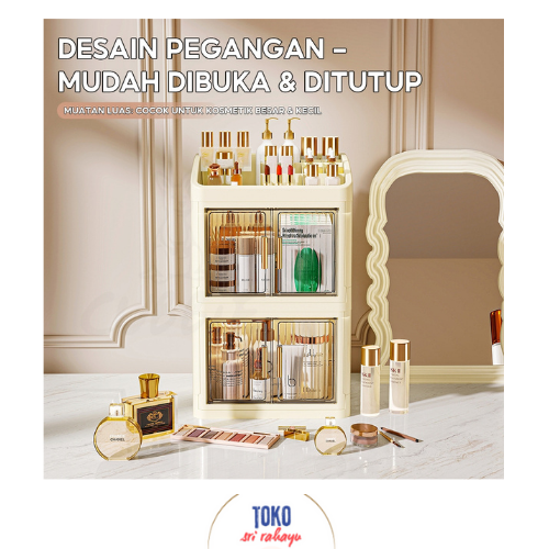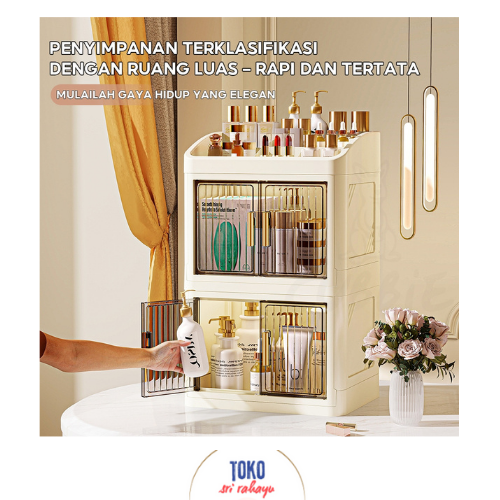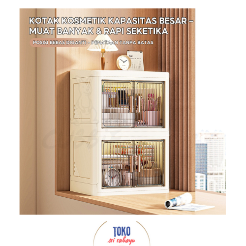 Rak Make Up Meja Kosmetik Premium Pintu Sliding Box Storage Transparan