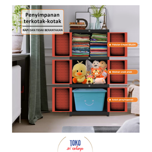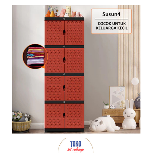 Lemari Pakaian Plastik 3/4/5 Susun (SLG-Merah) iHOME