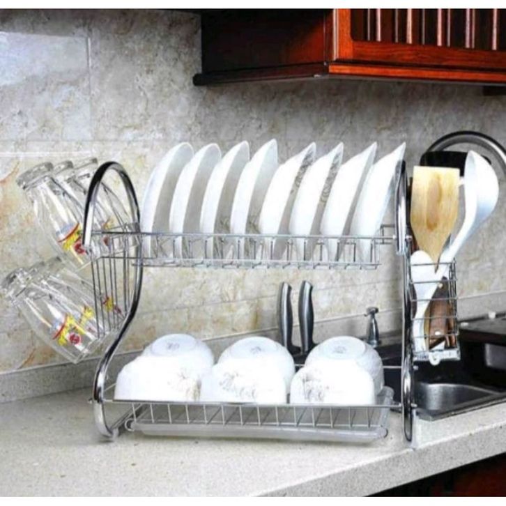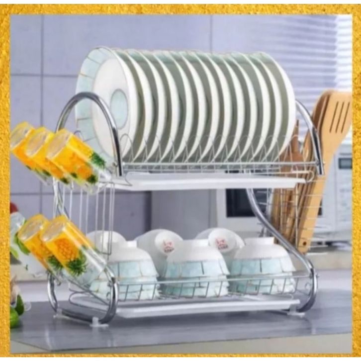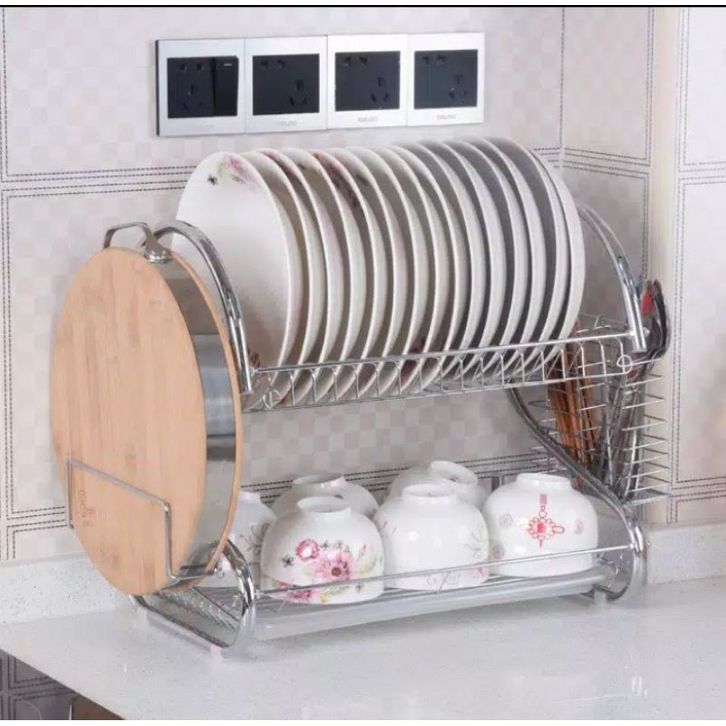 DISKON RAK PIRING Stainless Minimalis 2 Susun Tingkat anti karat debu dengan tatakan