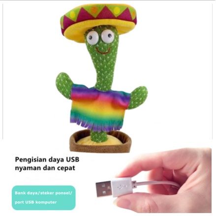 Boneka Goyang Boneka Bicara USB charging Boneka Kaktus Goyang Lampu dan Bicara / Boneka Katus Joget/ kaktus goyang / Ka