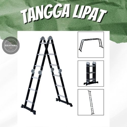 Tangga Lipat Aluminium / Tangga Lipat Rumah Besi Lipat AZKO Krisbow 3 mtr Tangga Lipat Aluminium Steel 4x3 Step - Hitam