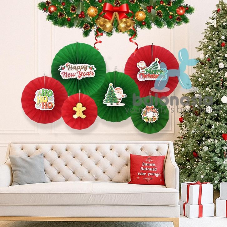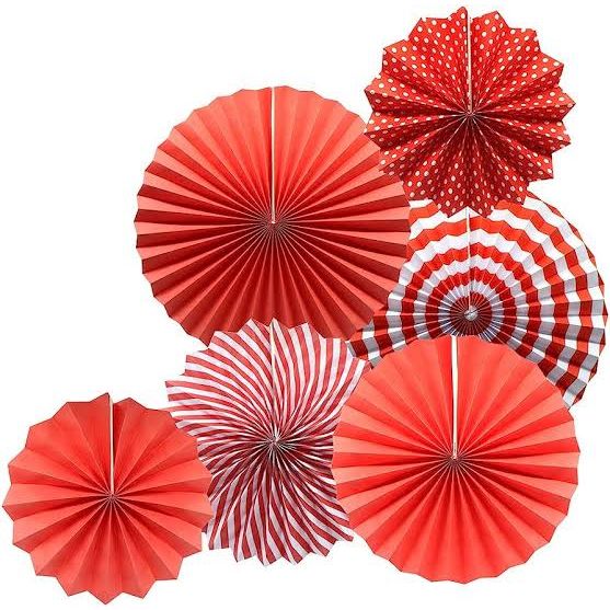 Dekorasi Pesta 6 pcs Paper Fan High Quality / Natal Merah Hijau / Merah paperfan biru pink / Dirgahayu RI