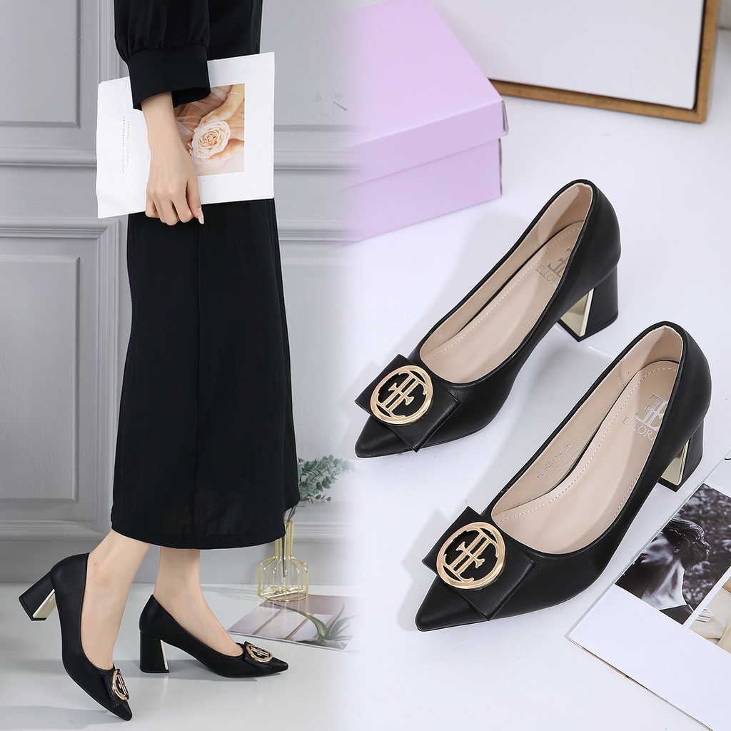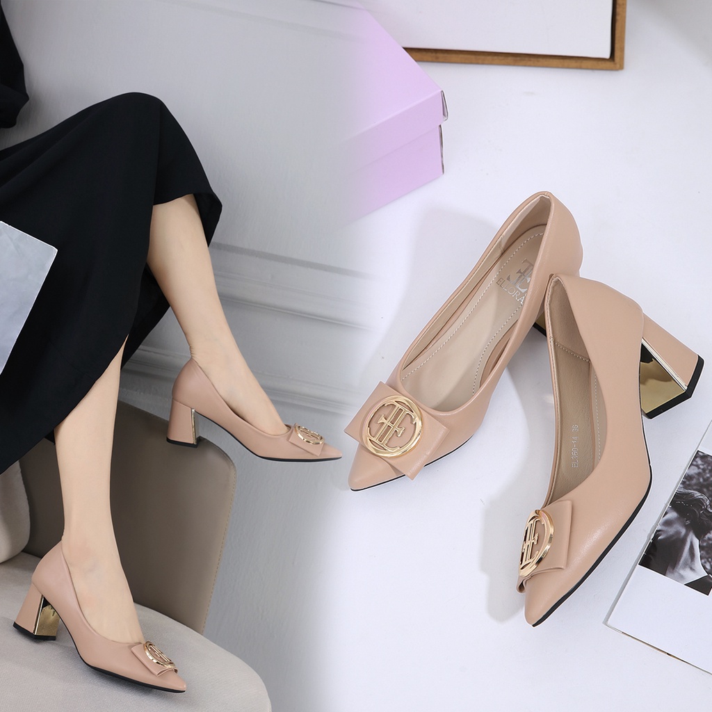 Sepatu Pantofel Wanita Sepatu Hak Kerja ELLORA EL 360-14 Sepatu Hak Wanita Kerja Block Heels Import 6cm
