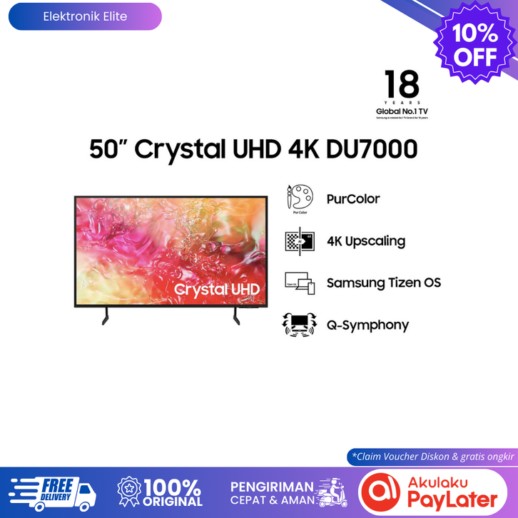 Tv samsung 50 inch samsung smart tv 50 inch crystal uhd 4k du7000 - ua50du7000kxxd tv smart 50 inch