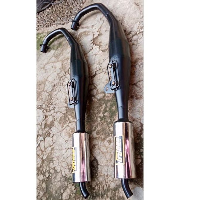 KNALPOT KENALPOT SATRIA 2TAK HIU/LUMBA PERUT HITAM GARING KEMRINCING