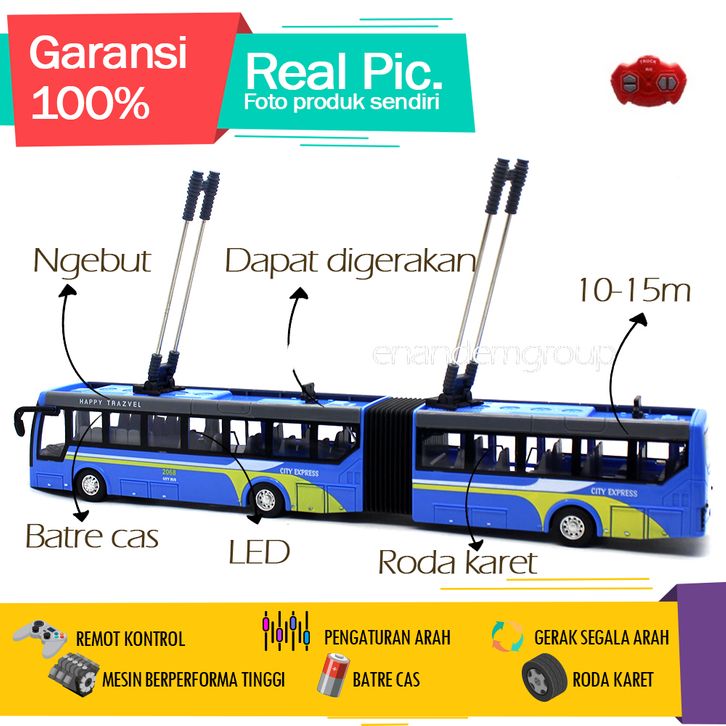 Mainan Mobil Remot Kontrol RC Super Bus Gandeng M0Del Listrik LRT Cas