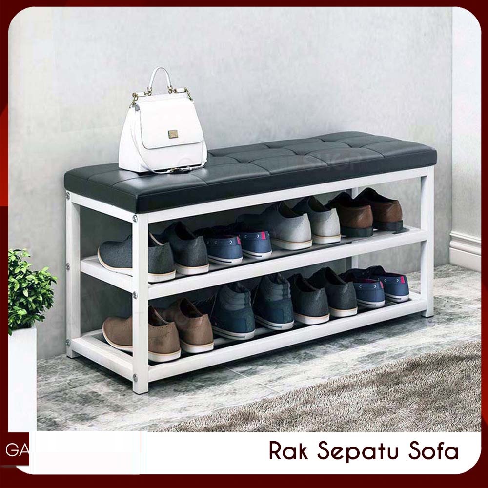 Rak Sepatu Duduk Sofa Besi Tempat Pakai Sandal Ruang Tamu Kokoh Kuat Lemari Sepatu 2 Susun