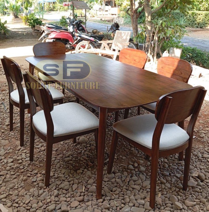 MEJA MAKAN MINIMALIS SCANDINAVIAN MODERN KAYU JATI BUSA EMPUK - MEJA + 4 KURSI