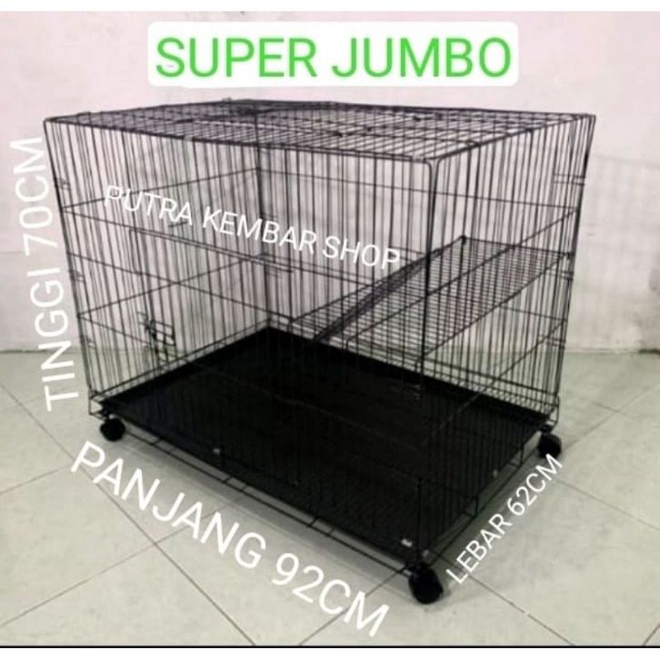 kandang kucing anjing kelinci lipat jumbo tingkat 2 ukuran 92x70x62 + RODA