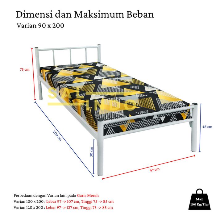 RANJANG KASUR BESI DIVAN DIPAN BED UKURAN 90X200 100X200 120X200 TEMPAT TIDUR ANAK DEWASA SINGLE MURAH