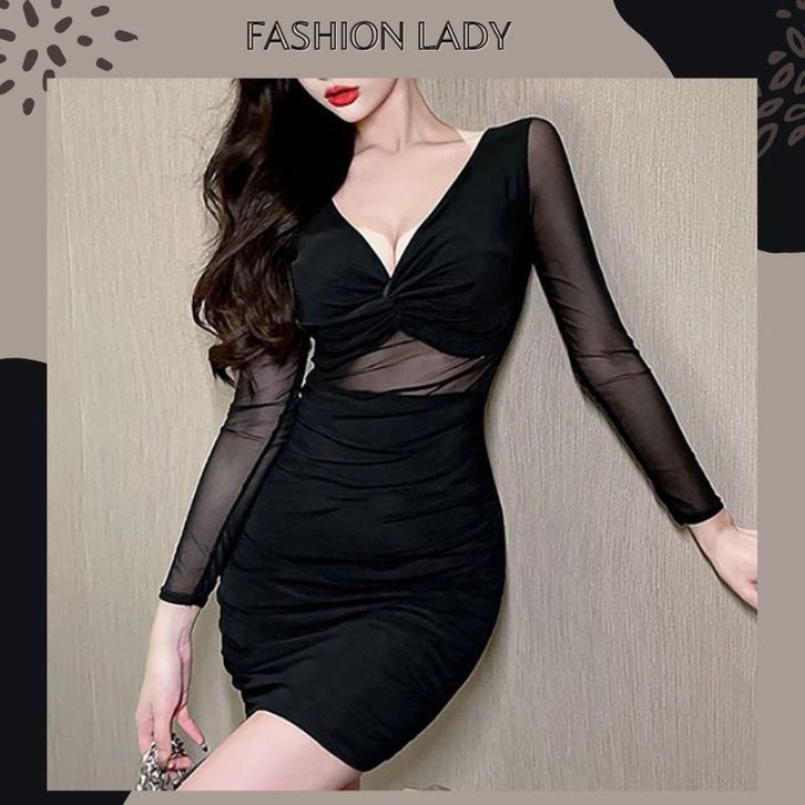 DRESS WANITA NEWLAN QZ091 SLIM FIT GAUN KOREA HITAM SEKSI MINI TERMURAHH