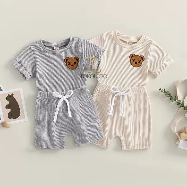 Setelan Baju Bayi Set Pakaian Anak Cowok Cewe Celana Atasan Pendek Bahan Tebal Halus Premium Anti Iritasi Stylish