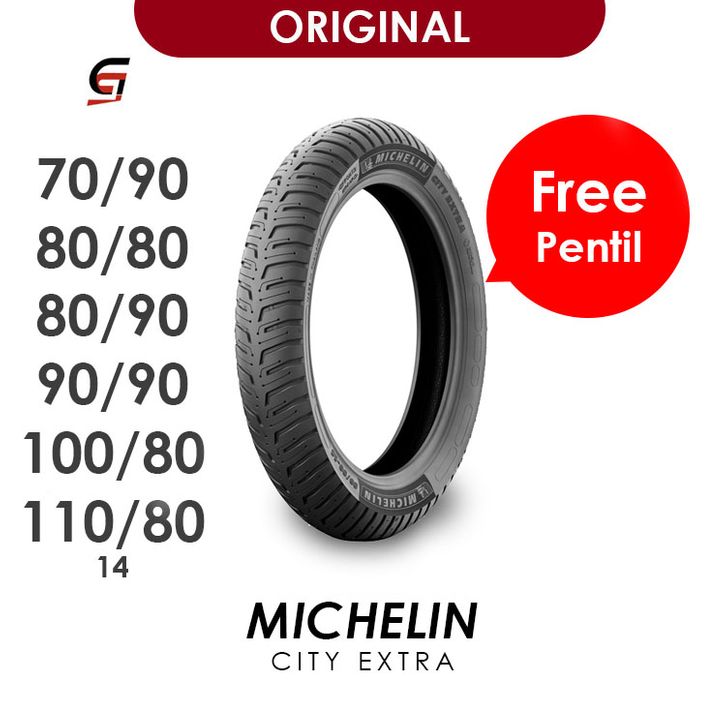 Ban Motor Michelin City Extra Ukuran 70/90 80/80 80/90 90/90 100/80 110/80 Ring 14 Tubeless Matic Bonus Pentil Tubles