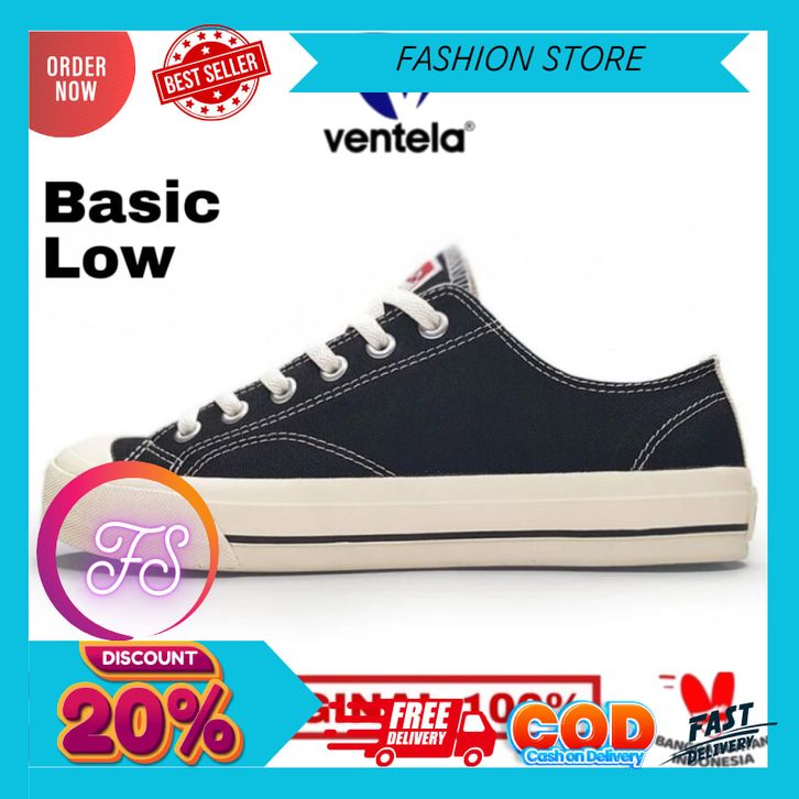 SEPATU SNEAKERS PRIA CASUAL VENTELA BASIC LOW BLACK NATURAL ORIGINAL VENTELA OFFICIAL STORE