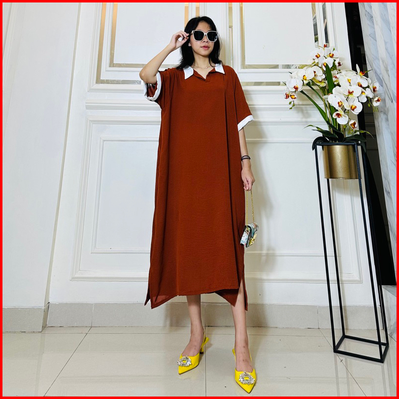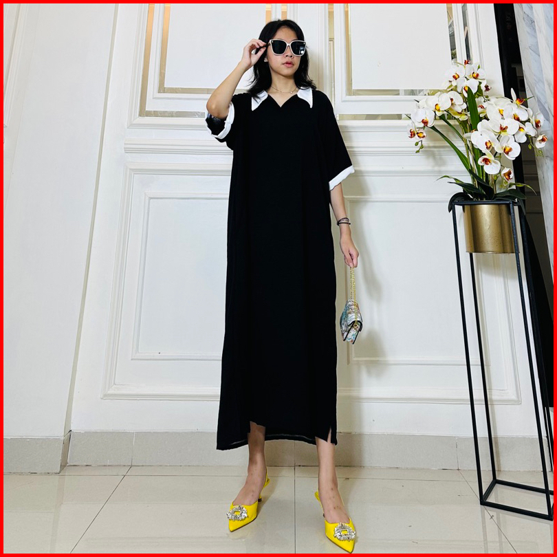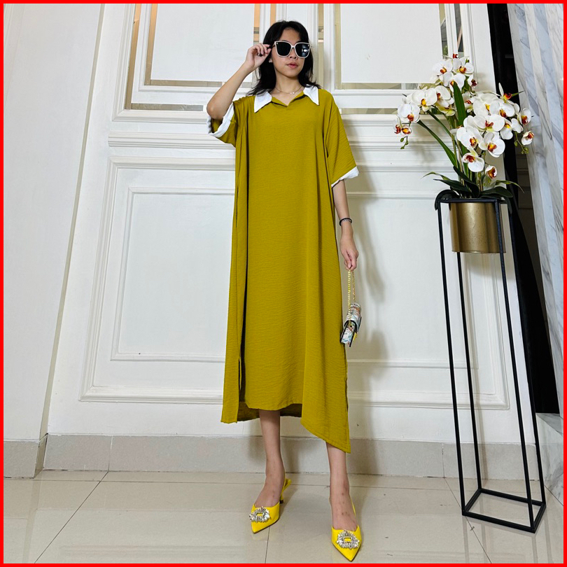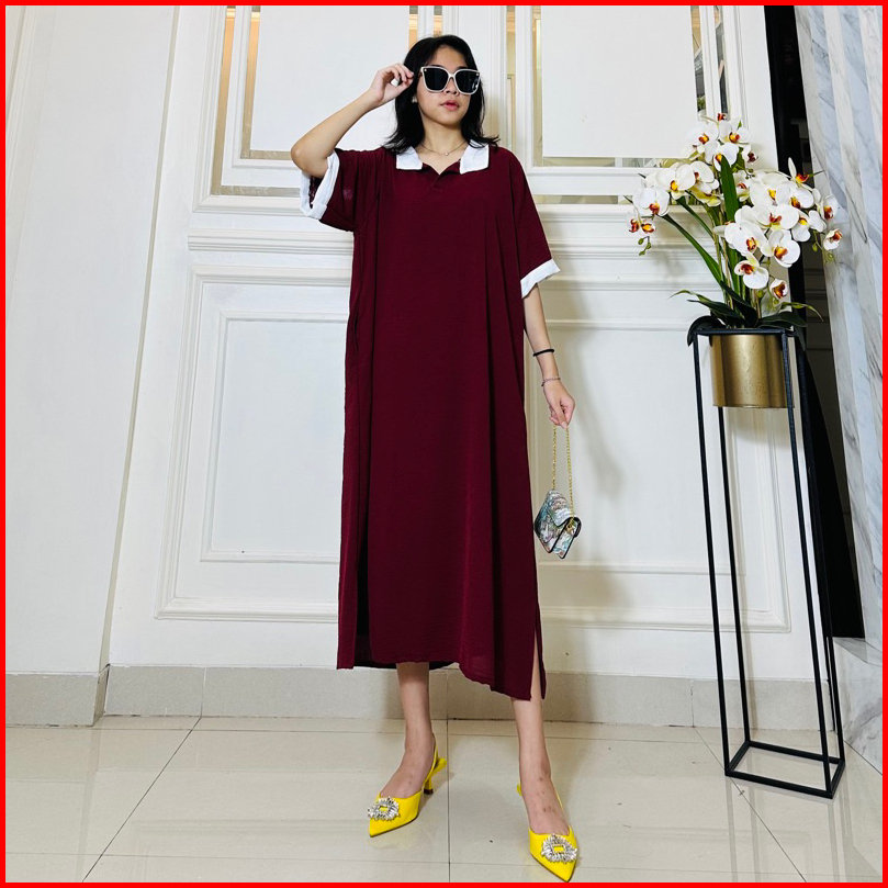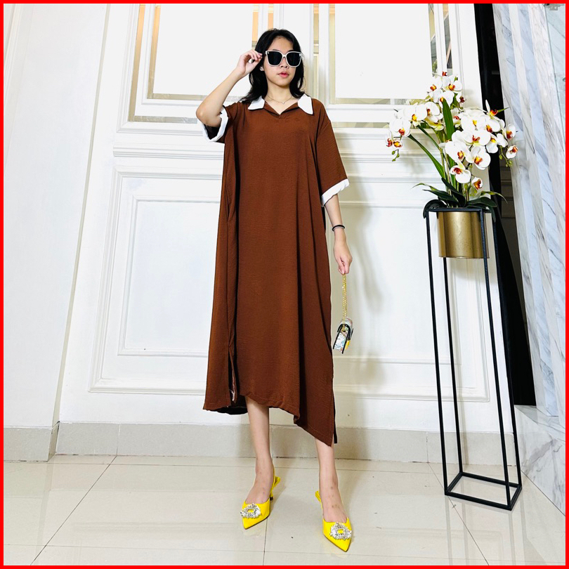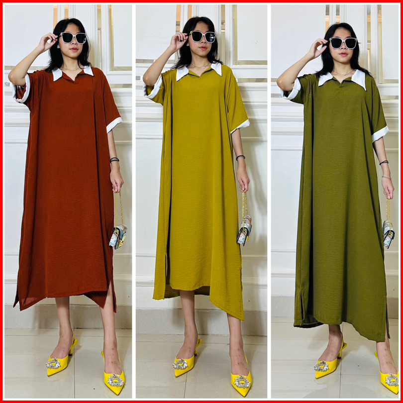 Daster Tania Dress Wanita Kerah Collar Bahan Crincle Airflow Ld 120 Pb 110