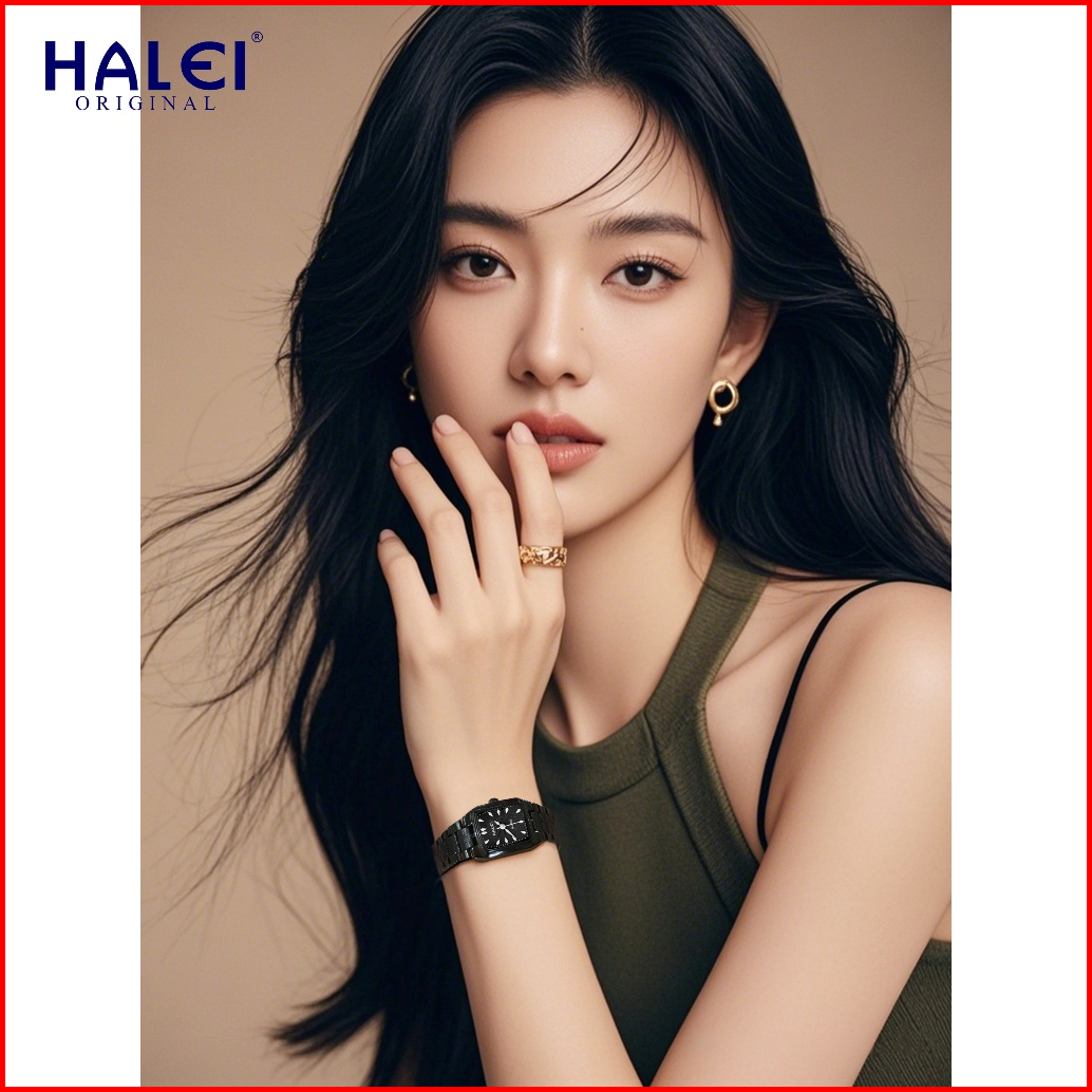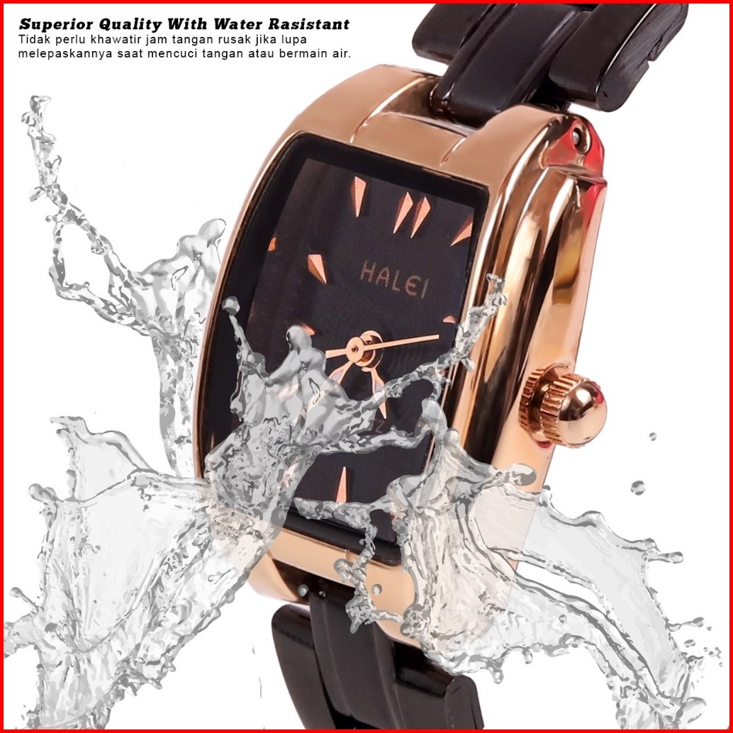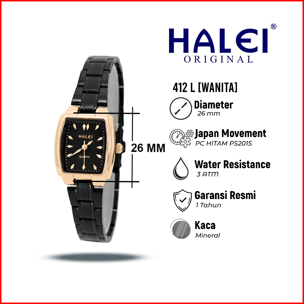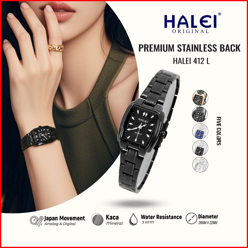 Halei 412 L Jam Tangan Wanita Halei Original Fashion Anti Air Rantai Stainless Back Analog Kekinian