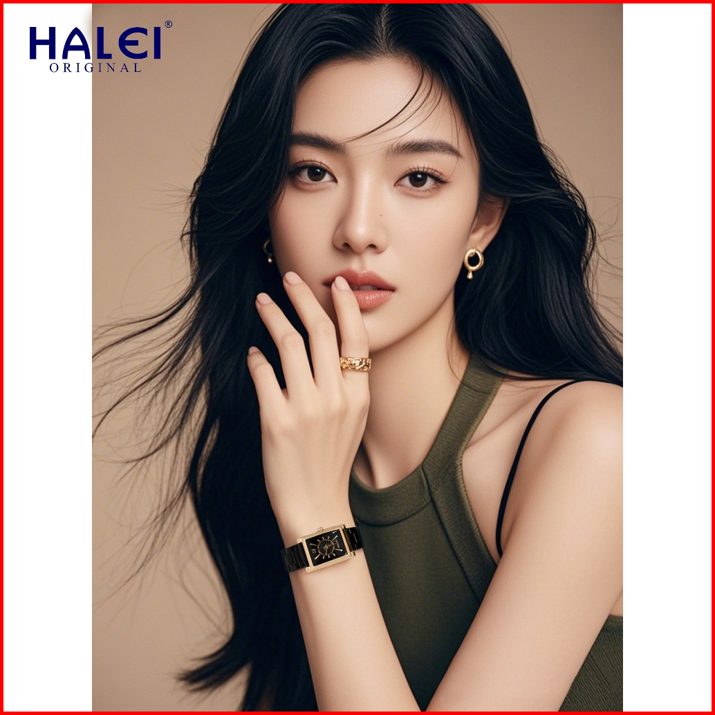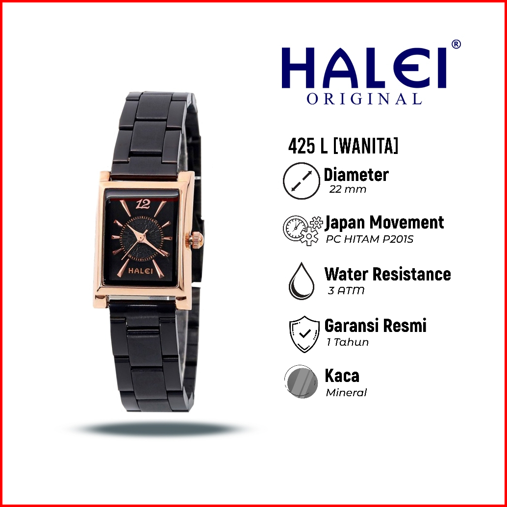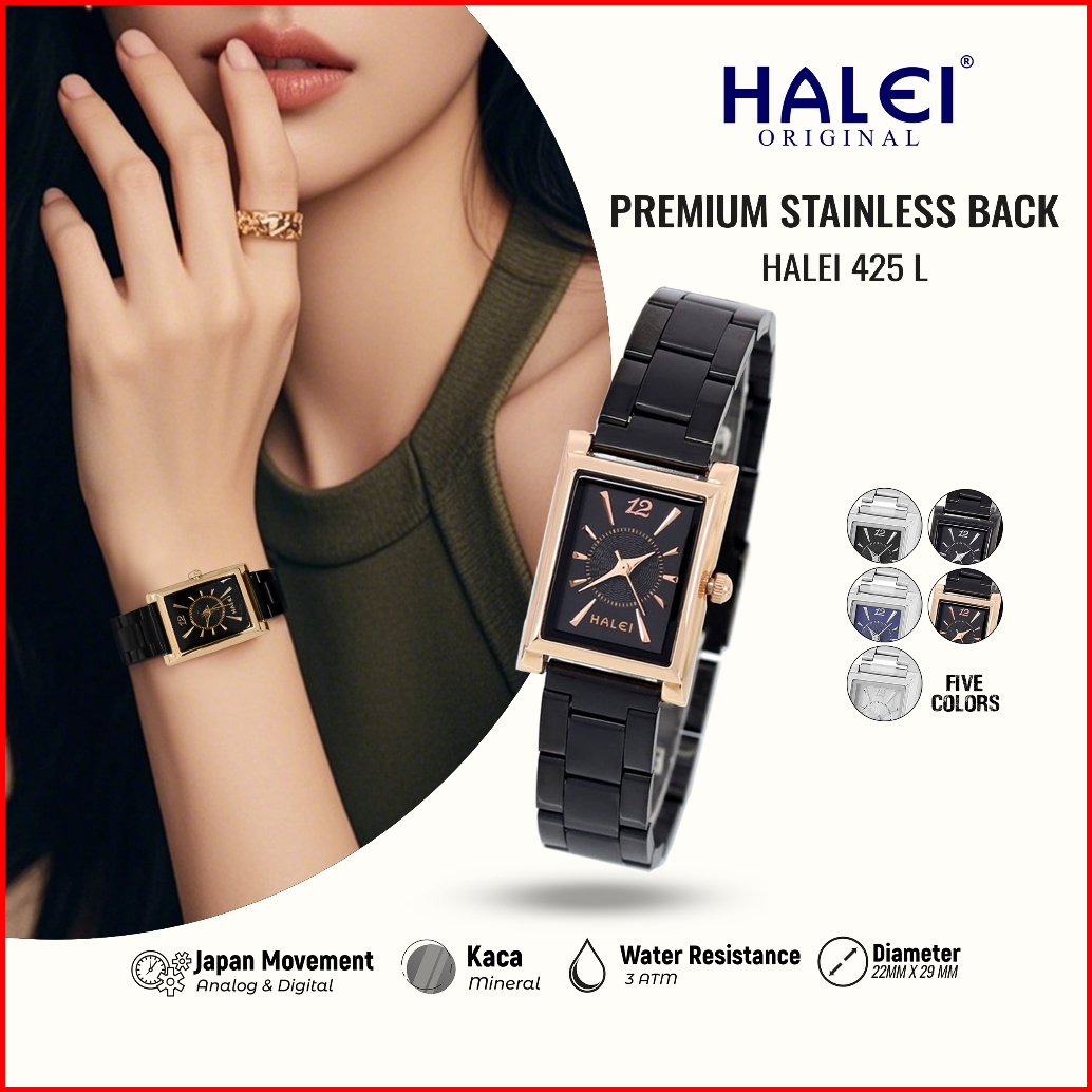 Halei 425 L Jam Tangan Wanita Halei Original Fashion Anti Air Rantai Stainless Back Analog Kekinian