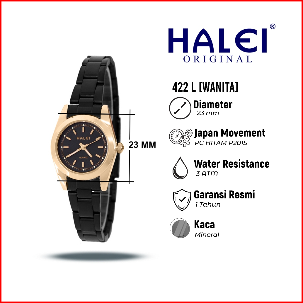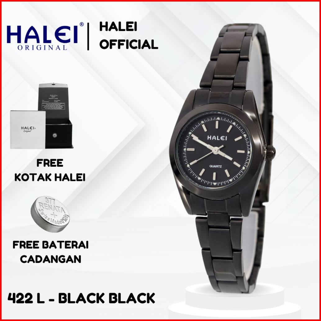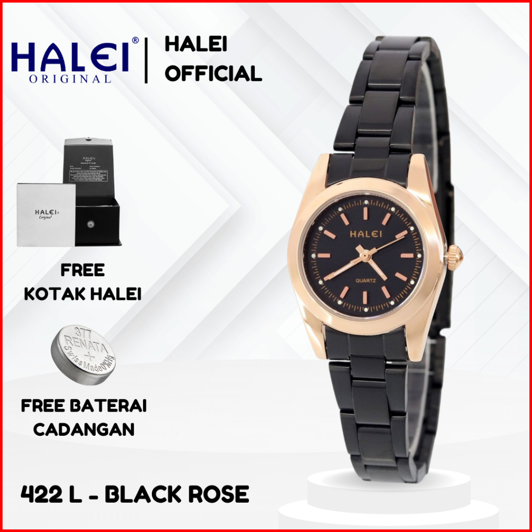Halei 422 L Jam Tangan Wanita Halei Original Fashion Anti Air Rantai Stainless Back Analog Kekinian