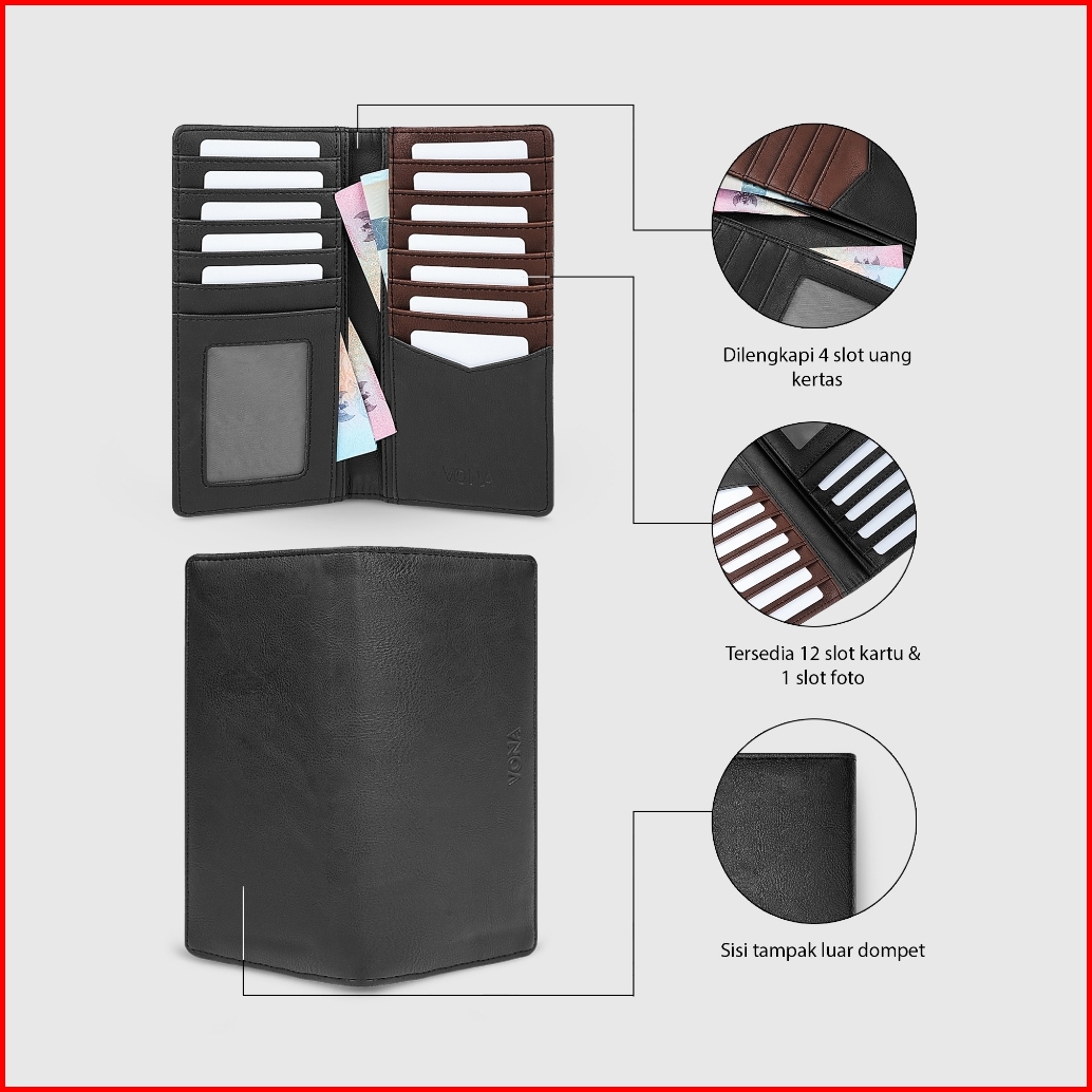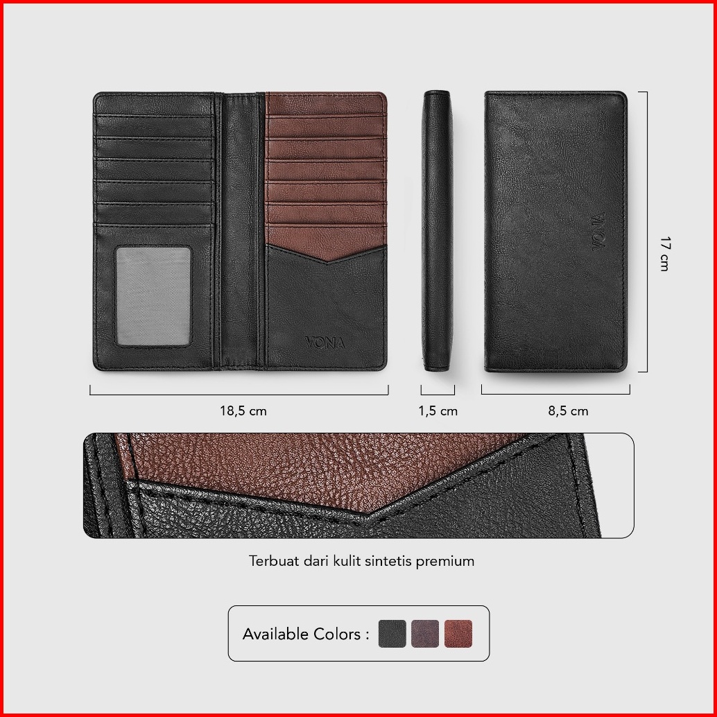 Vona Quentin Long Wallet - Dompet Panjang Pria Wanita Lipat Dua Kulit Pu