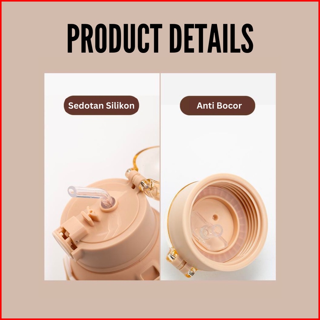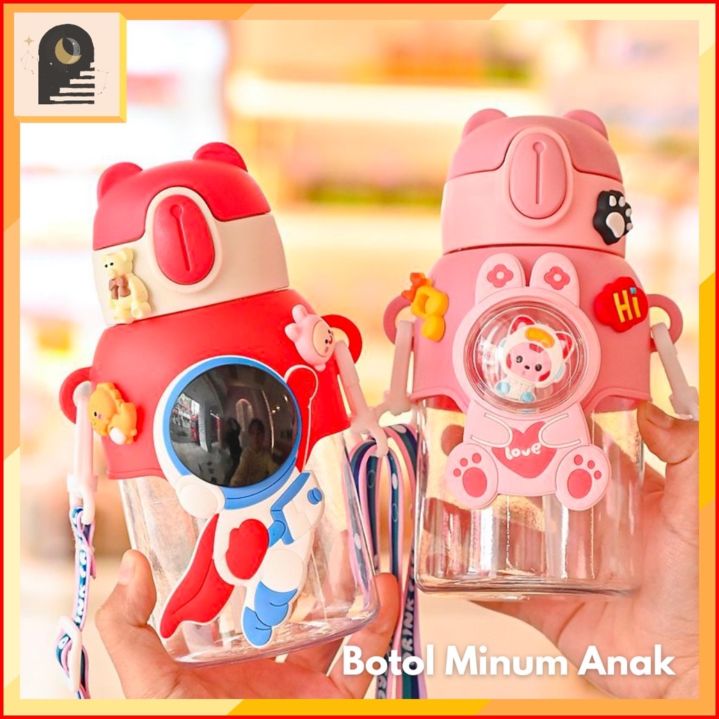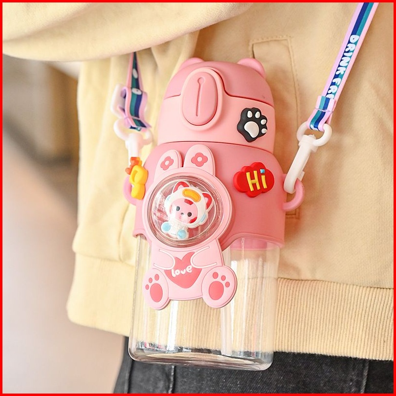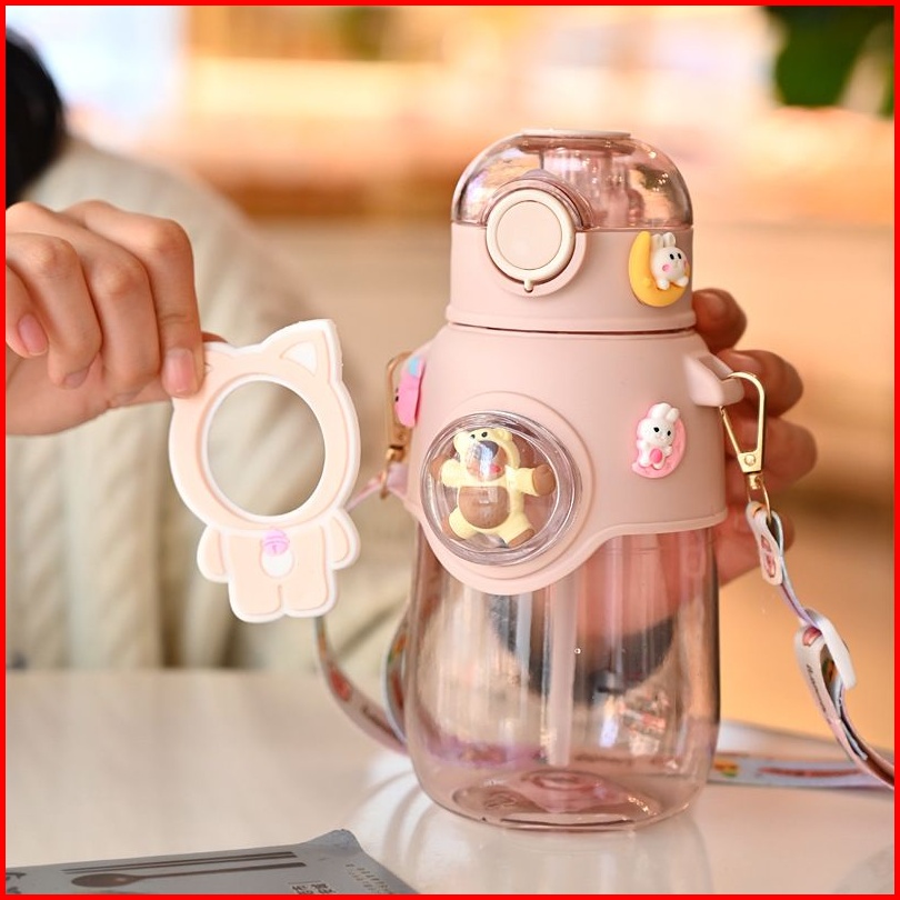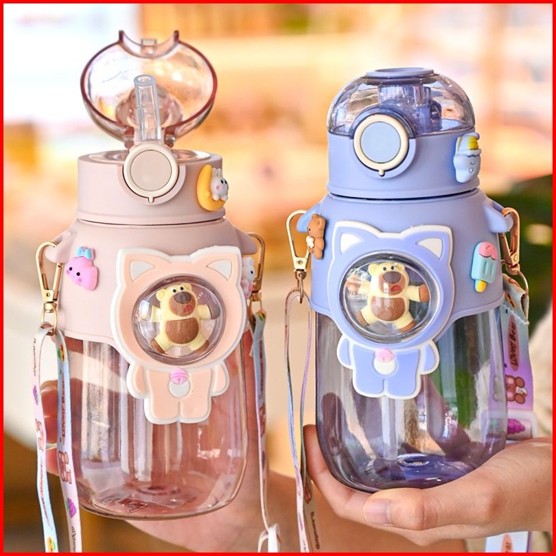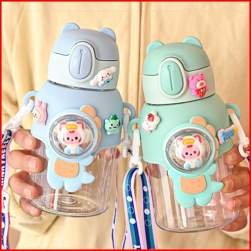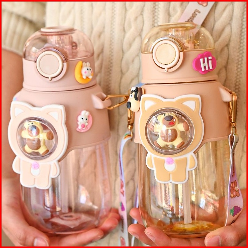 Either.id - Botol Minum Tali Sedotan Bear Botol Minum Anak 600 Ml Anti Tumpah Anti Pecah