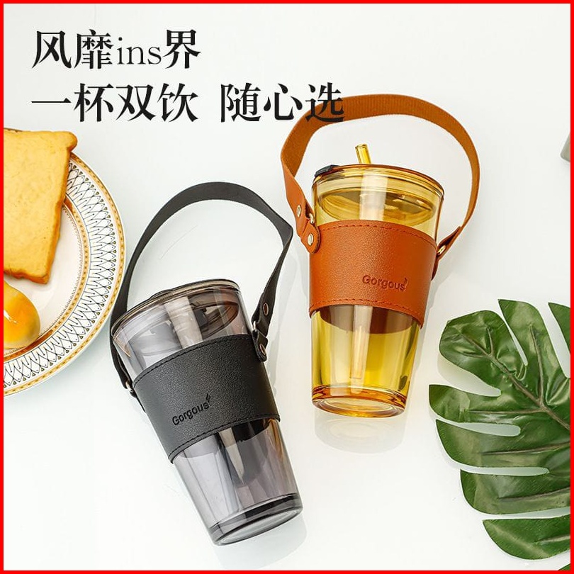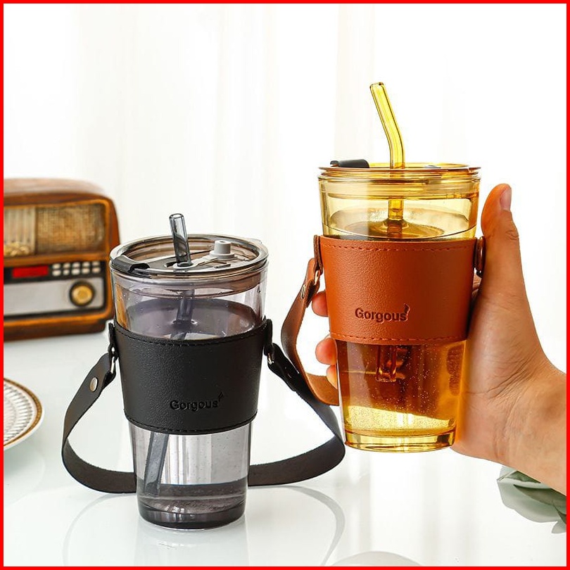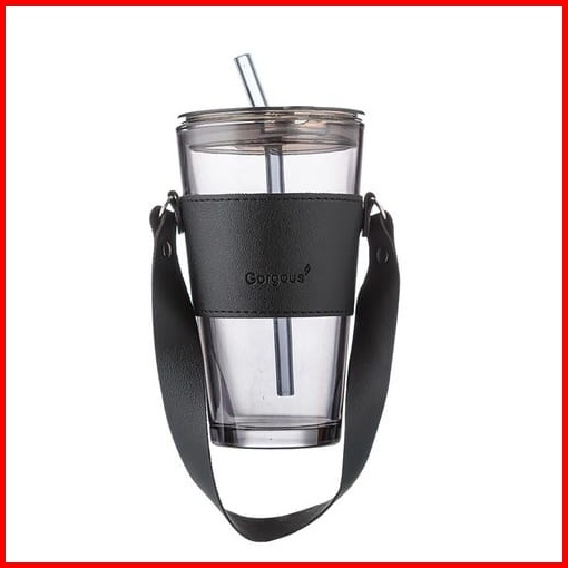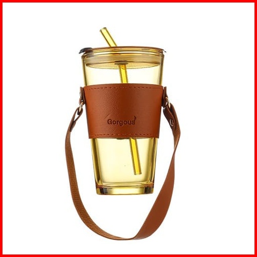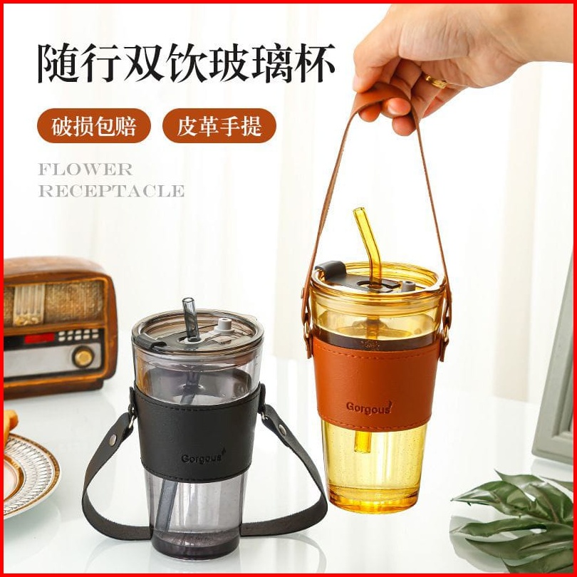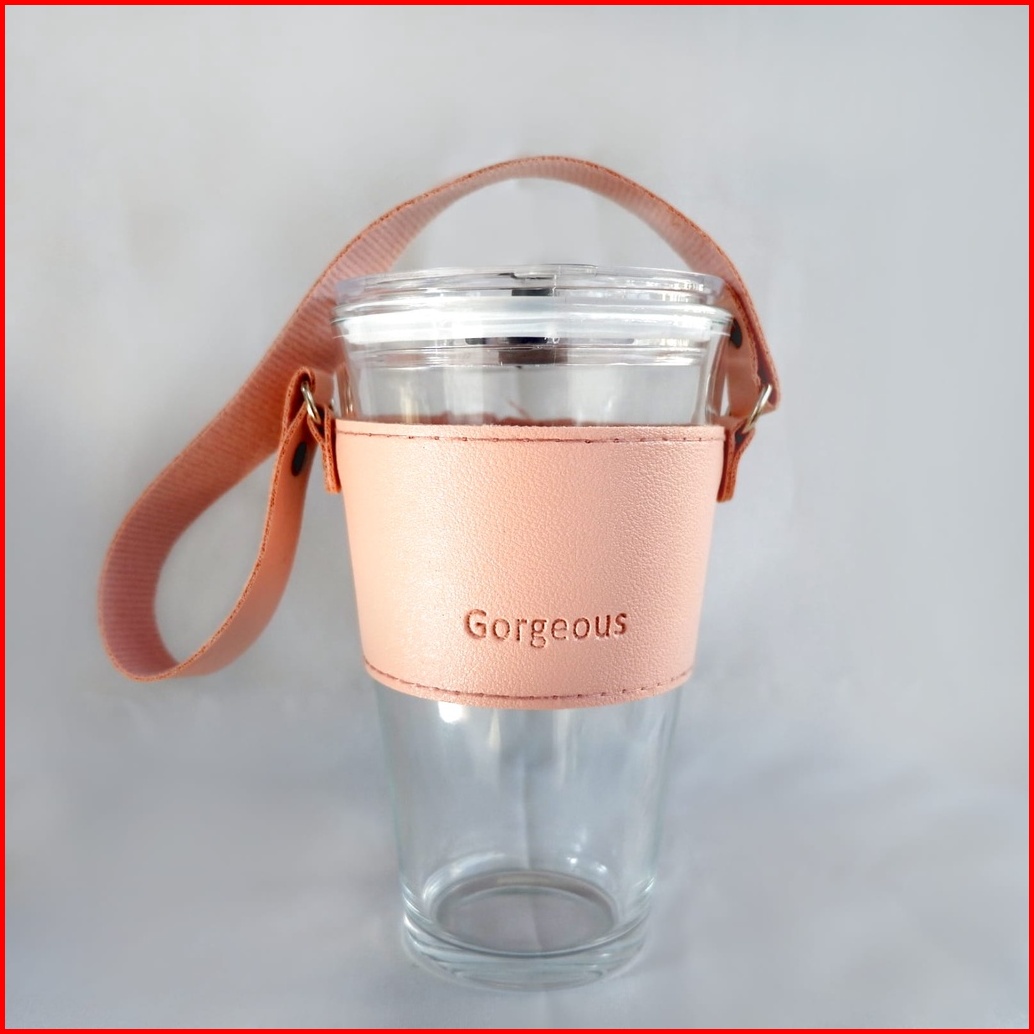 Gelas Tumbler Cangkir Kaca Mug Kopi Cup Glass Dengan Case Dan Sedotan - Bm222