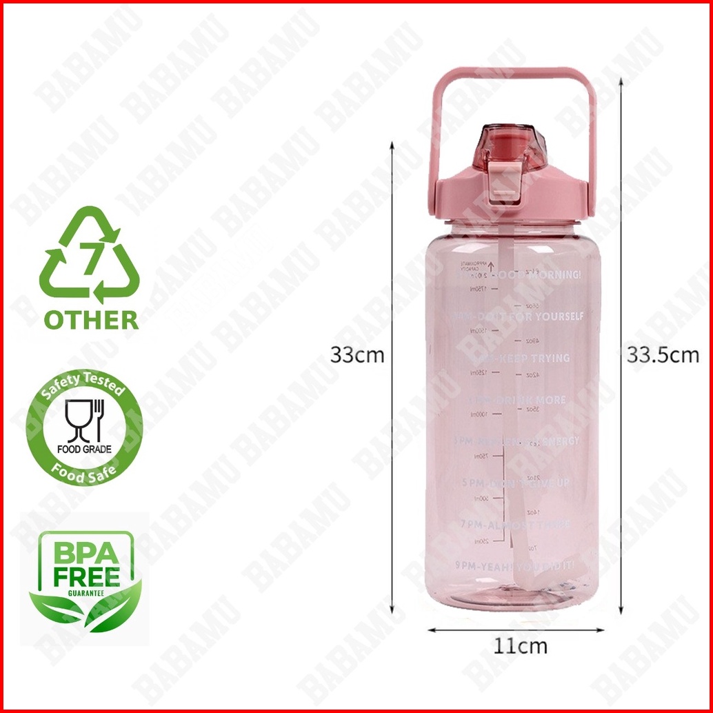 Botol Minum Jumbo 2 Liter - Motivasi Bening Bpa Free Kapasitas 2000 Ml Promo