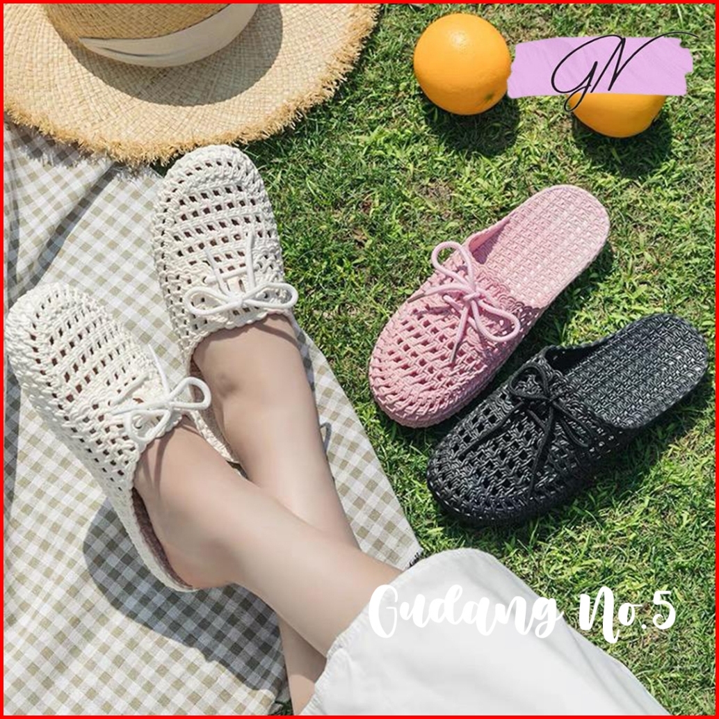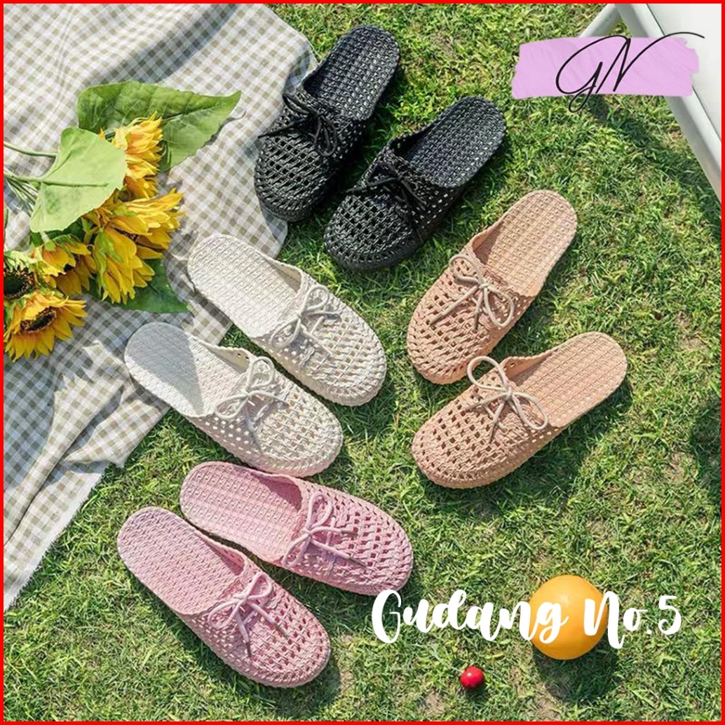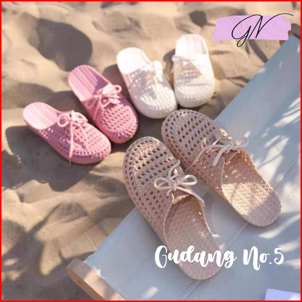 Gn-py132 Sandal Selop Wanita Sandal Flat Jelly Import Slip On Model Rajut Dengan Tali Terbaru