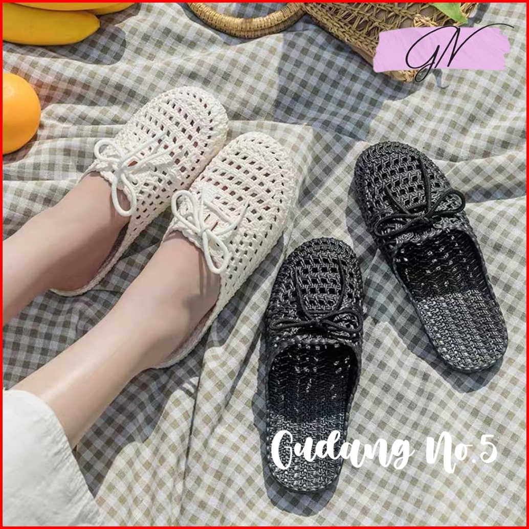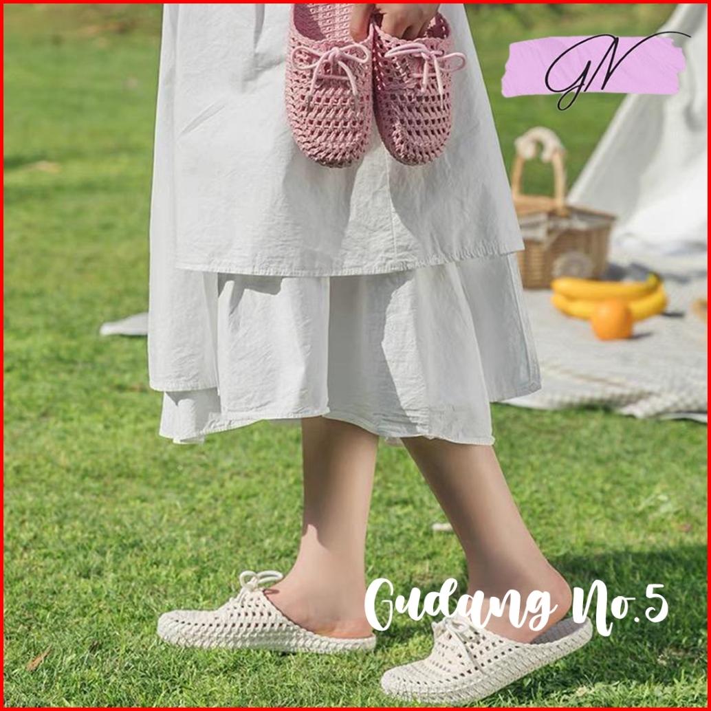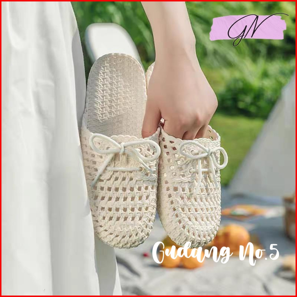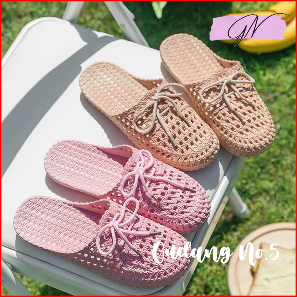 Gn-py132 Sandal Selop Wanita Sandal Flat Jelly Import Slip On Model Rajut Dengan Tali Terbaru