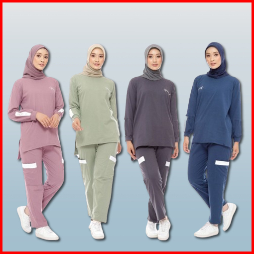 Senja Set Setelan Olahraga Wanita Jumbo Setelan Sepeda Gowes Senam Lari Baju Olahraga Kaos Muslimah