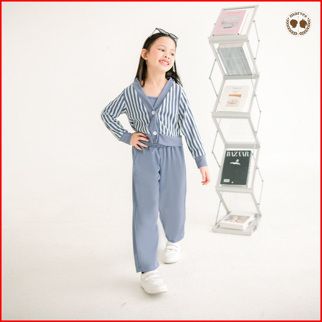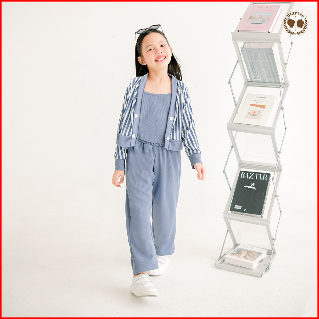 Marves Reggy Set Setelan Celana 3 In 1 Bahan Rip Knit Usia 1 Hingga 14 Tahun