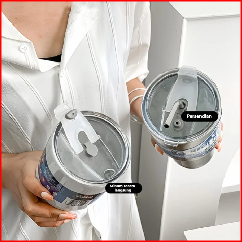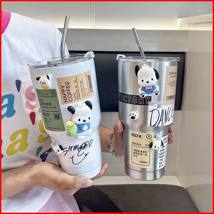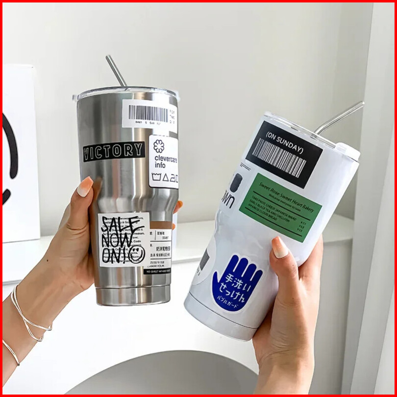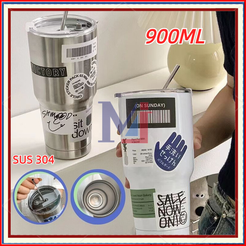 Cod900ml Cangkir Tumbler Kopi Cup Botol Minum Aesthetic Diy Stainless Steel Tumblr Coffee Free Sedotan Sticker
