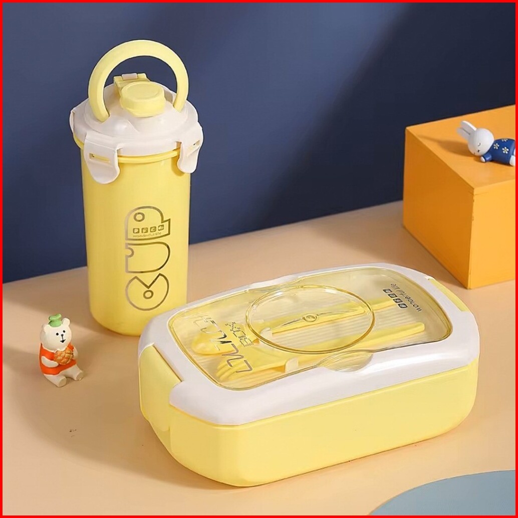Lunch Box With Water Bottle Set Lengkap Botol Minum Sendok Garpu 375-214