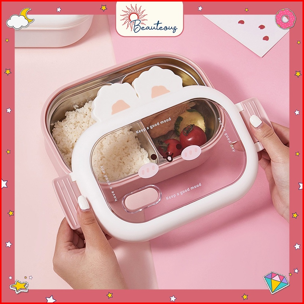 Kotak Makan Lunch Box Tempat Makan Stainless Plastik Anak Dewasa Lucu