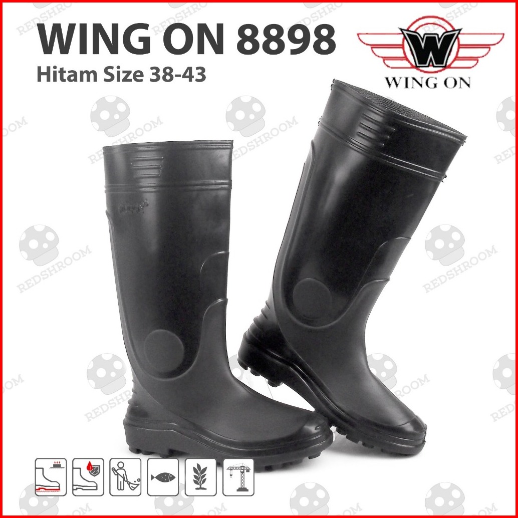 Sepatu Boot Tinggi Wing On 8898 Hitam Boots Karet Lokal Anti Slip Lentur Ringan Proyek Pabrik