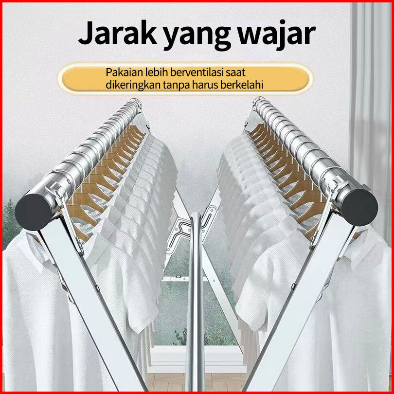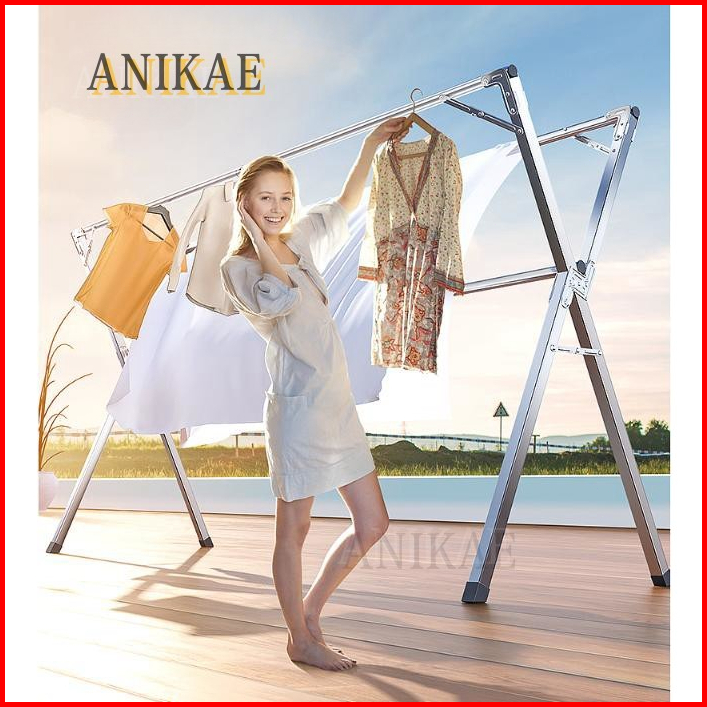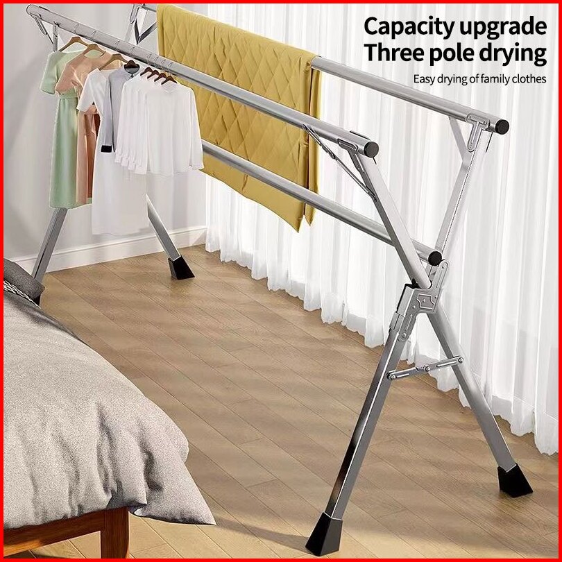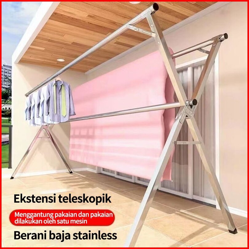 Sus 304 Jemuran Baju Lipat Stainless Steel Gantungan Baju 160-240cm Tempat Jemuran Baju Jemuran Hanger Portable